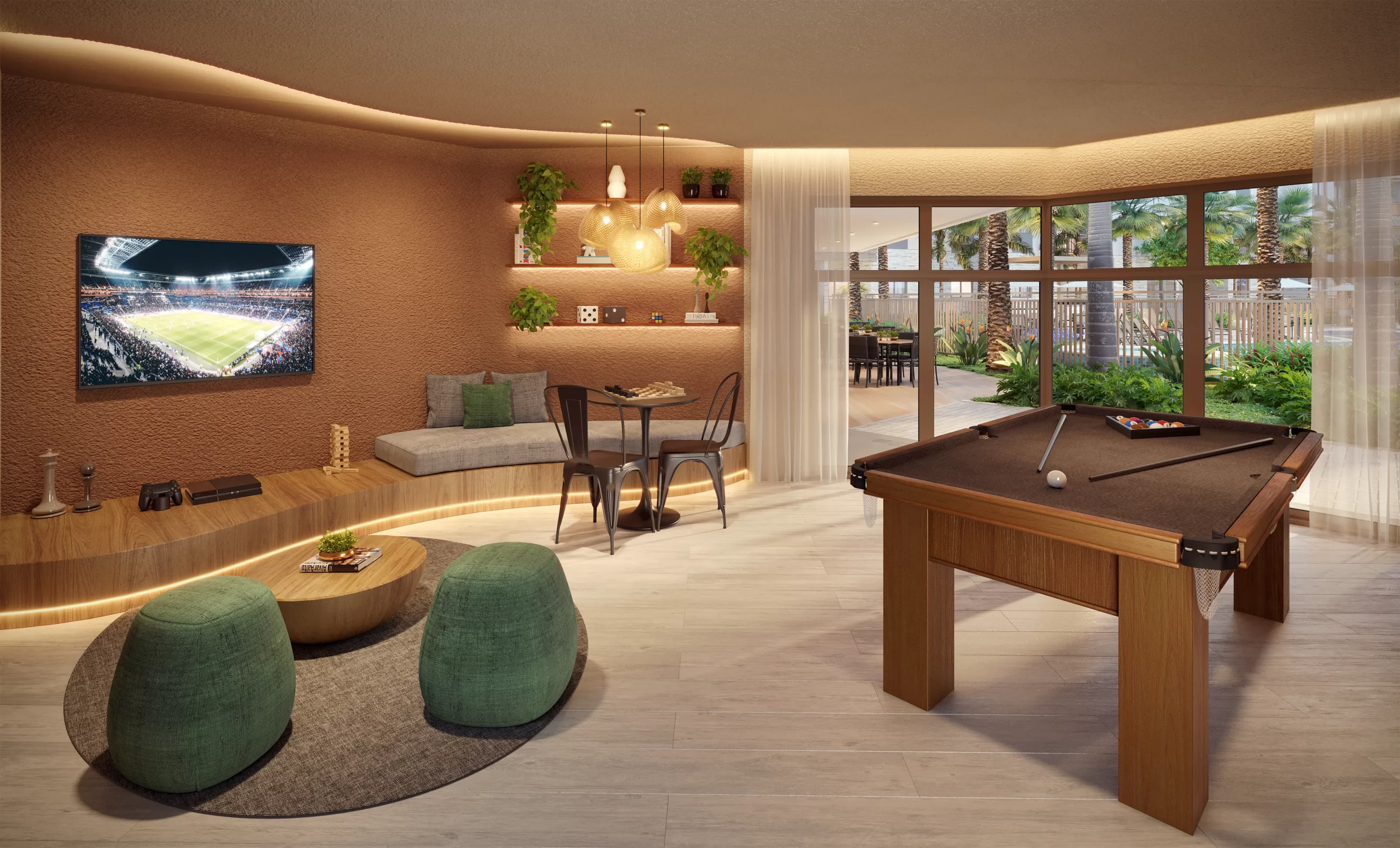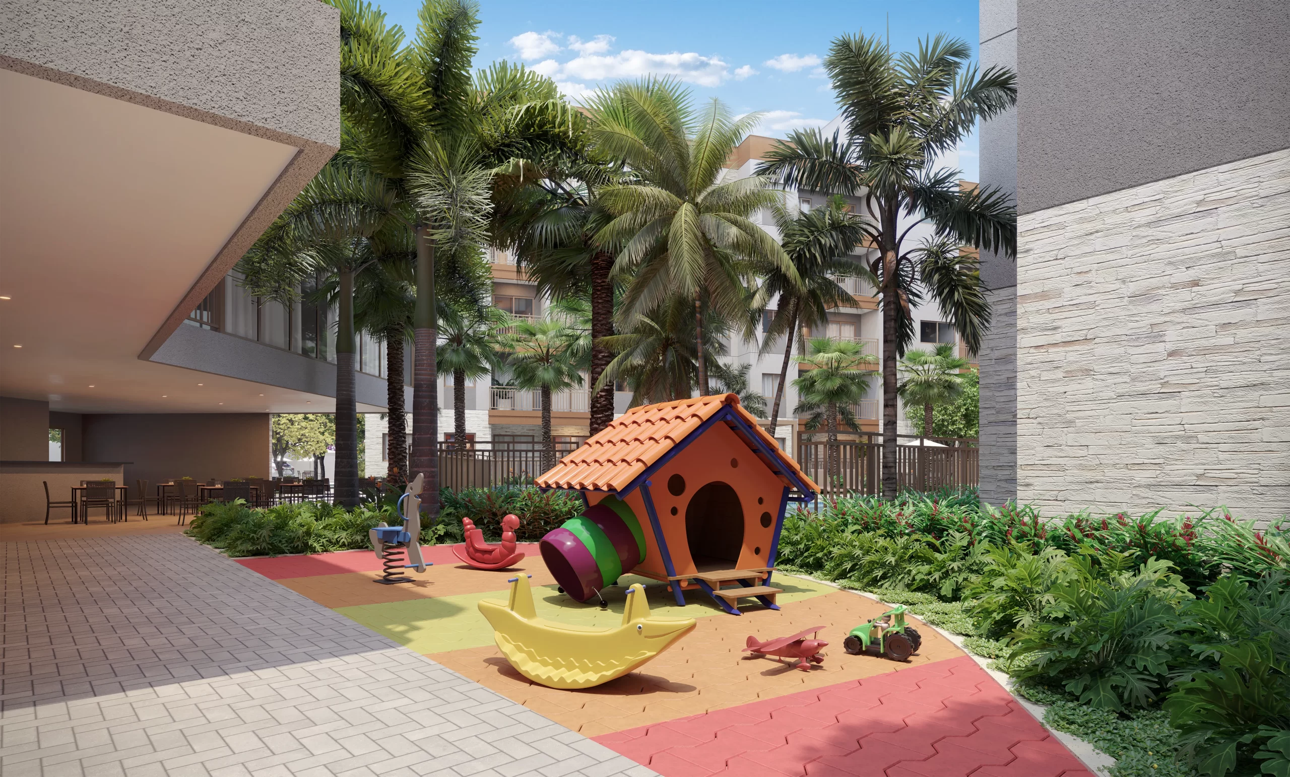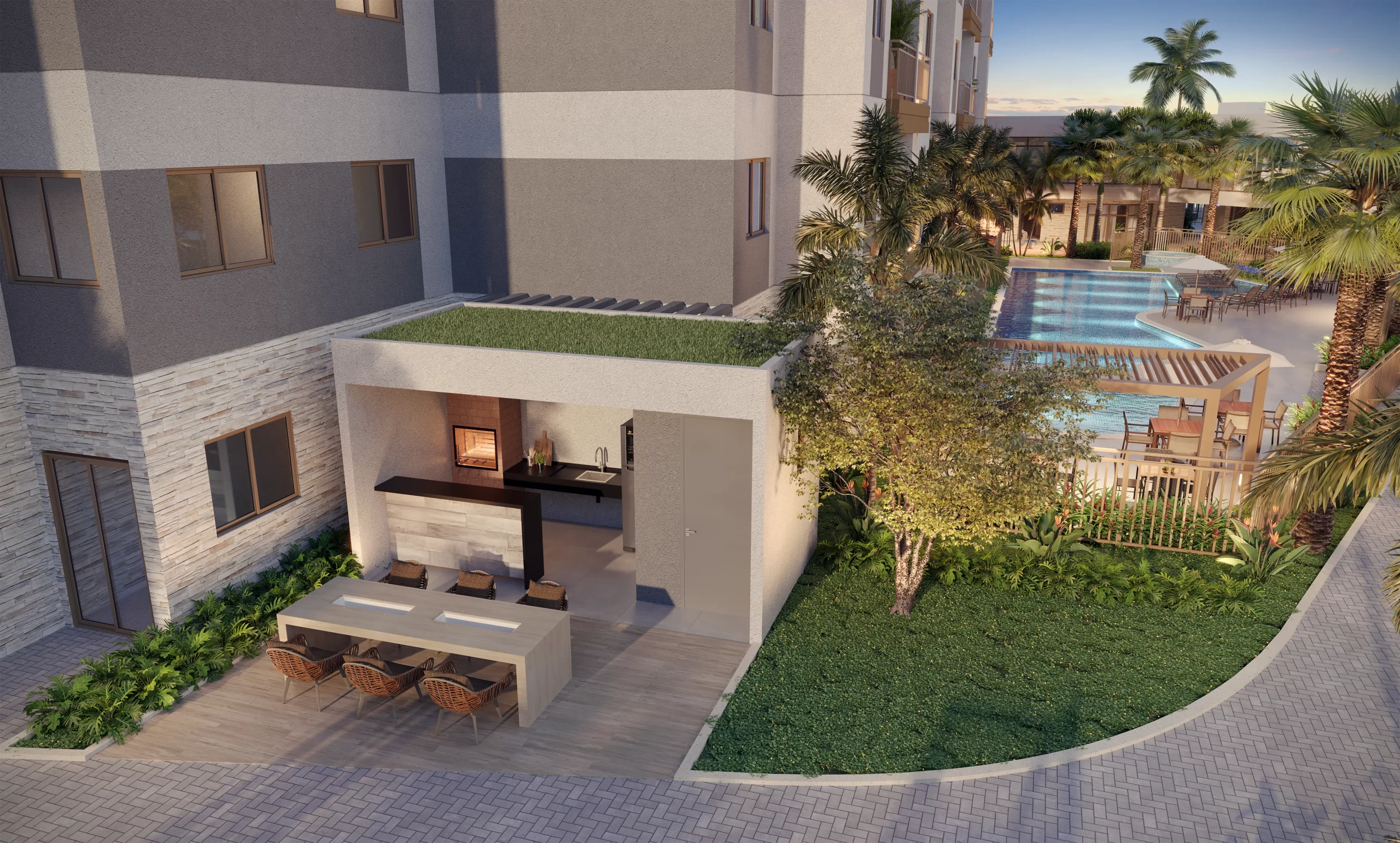 Todas as imagens, perspectivas e representações visuais contidas neste material possuem caráter meramente ilustrativo e têm como objetivo apresentar sugestões de decoração e ambientação do empreendimento. Podem ocorrer alterações nas características finais em decorrência de ajustes técnicos, legais ou executivos. As perspectivas artísticas da vegetação representam projeções de paisagismo com porte adulto, que será alcançado após a entrega do empreendimento e em conformidade com o projeto aprovado. O detalhamento completo dos serviços, acabamentos, equipamentos, e especificações técnicas que compõem este empreendimento encontra-se disponível no Memorial Descritivo, na Convenção de Condomínio e na Planta de Contrato, em conformidade com os termos da Lei nº 4.591/64.