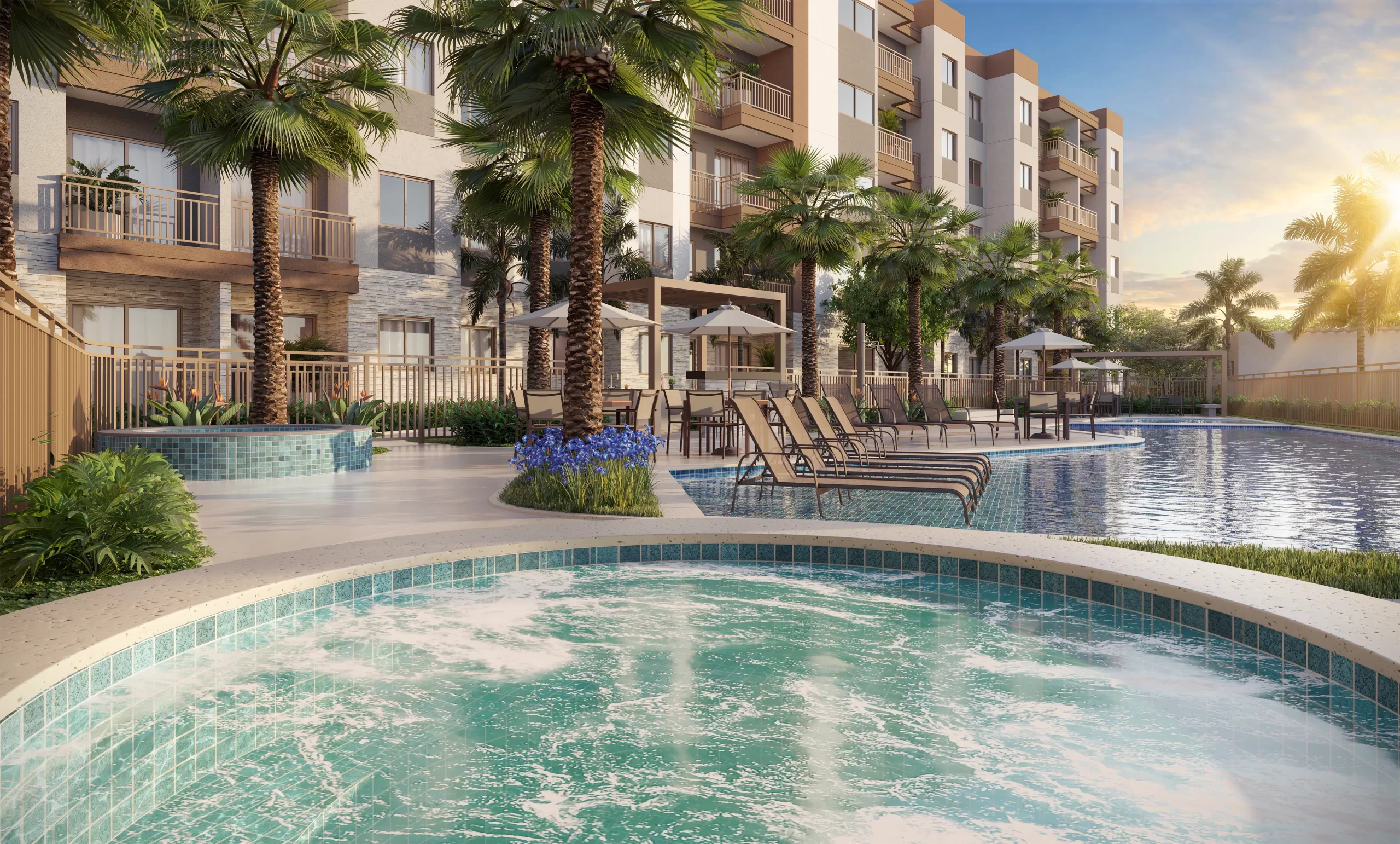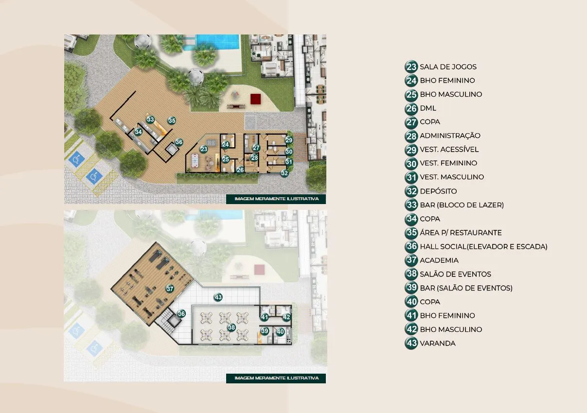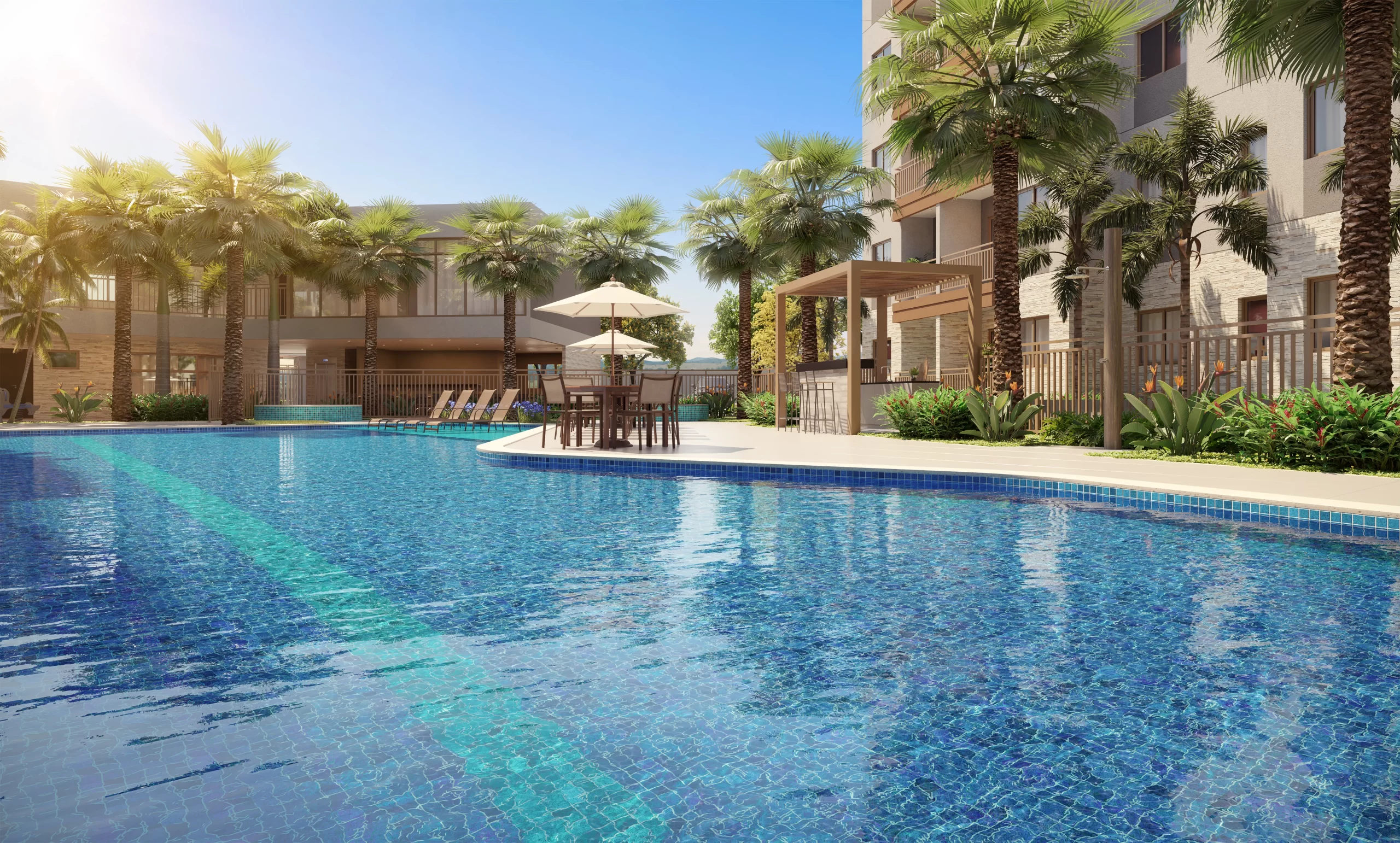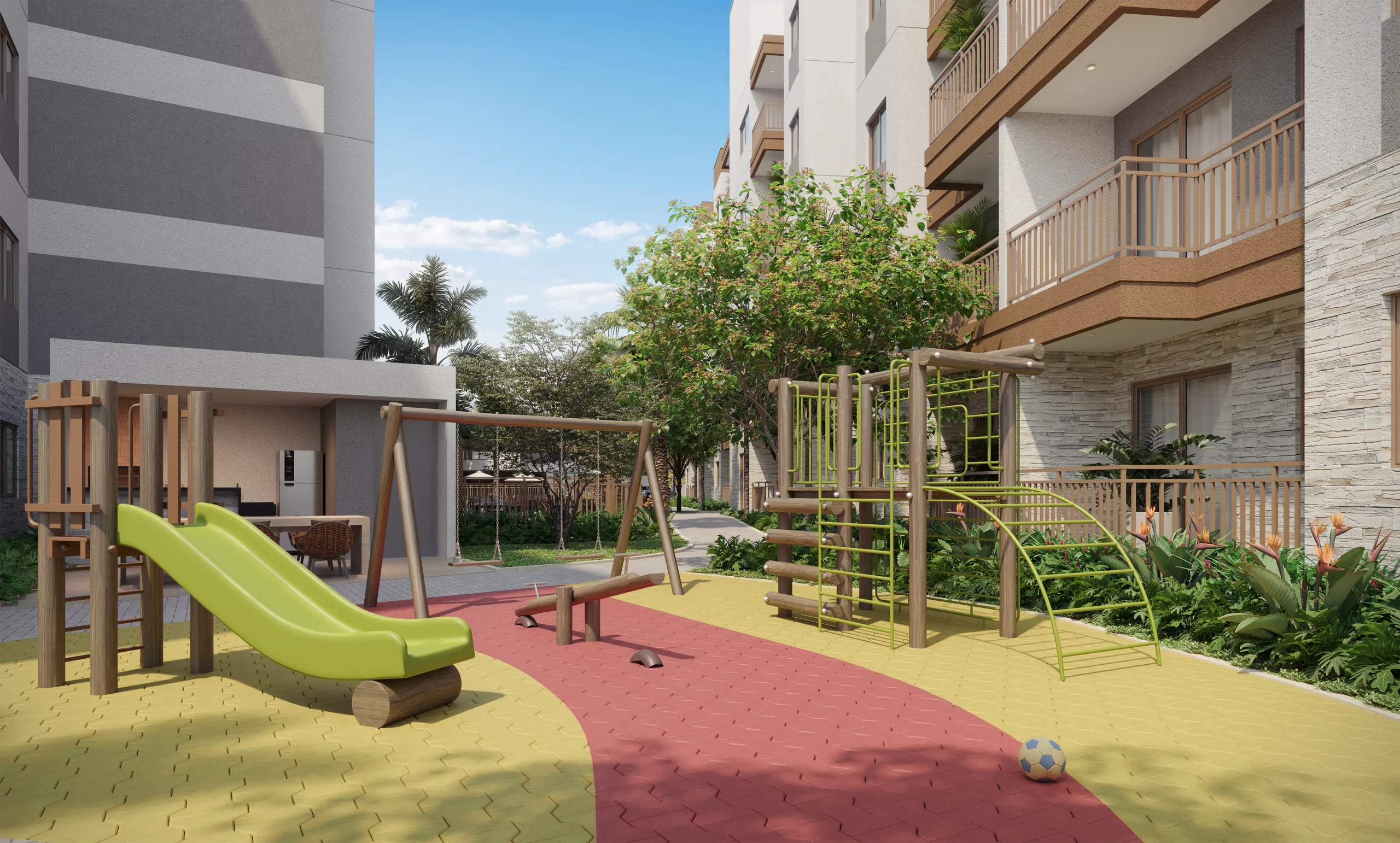 Todas as imagens, perspectivas e representações visuais contidas neste material possuem caráter meramente ilustrativo e têm como objetivo apresentar sugestões de decoração e ambientação do empreendimento. Podem ocorrer alterações nas características finais em decorrência de ajustes técnicos, legais ou executivos. As perspectivas artísticas da vegetação representam projeções de paisagismo com porte adulto, que será alcançado após a entrega do empreendimento e em conformidade com o projeto aprovado. O detalhamento completo dos serviços, acabamentos, equipamentos, e especificações técnicas que compõem este empreendimento encontra-se disponível no Memorial Descritivo, na Convenção de Condomínio e na Planta de Contrato, em conformidade com os termos da Lei nº 4.591/64.