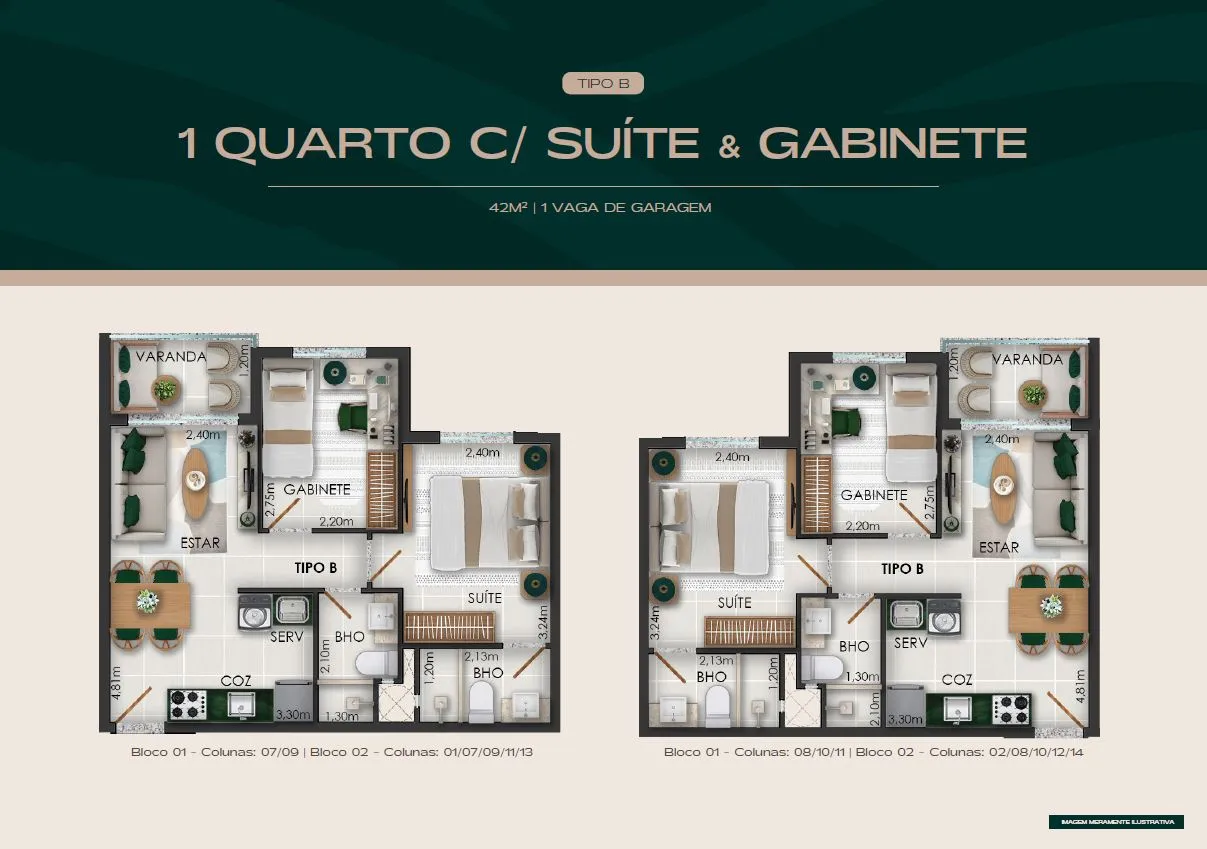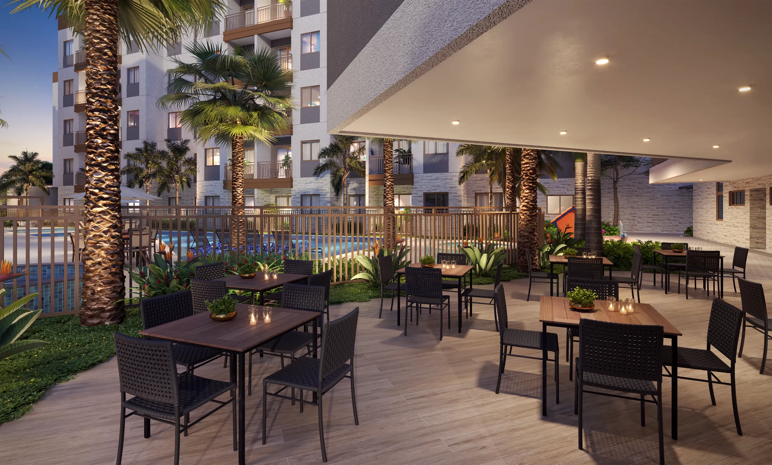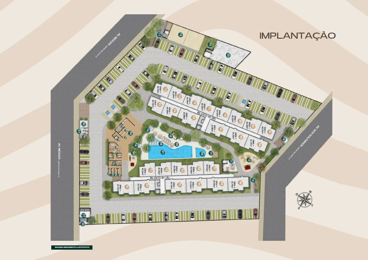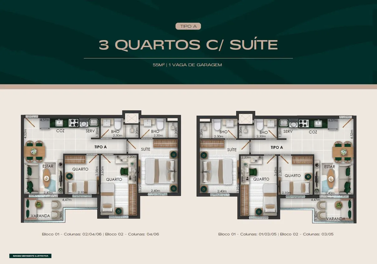Todas as imagens, perspectivas e representações visuais contidas neste material possuem caráter meramente ilustrativo e têm como objetivo apresentar sugestões de decoração e ambientação do empreendimento. Podem ocorrer alterações nas características finais em decorrência de ajustes técnicos, legais ou executivos. As perspectivas artísticas da vegetação representam projeções de paisagismo com porte adulto, que será alcançado após a entrega do empreendimento e em conformidade com o projeto aprovado. O detalhamento completo dos serviços, acabamentos, equipamentos, e especificações técnicas que compõem este empreendimento encontra-se disponível no Memorial Descritivo, na Convenção de Condomínio e na Planta de Contrato, em conformidade com os termos da Lei nº 4.591/64.