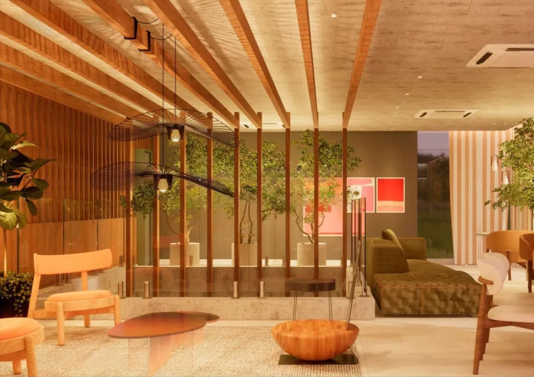 Todas as imagens, perspectivas e representações visuais contidas neste material possuem caráter meramente ilustrativo e têm como objetivo apresentar sugestões de decoração e ambientação do empreendimento. Podem ocorrer alterações nas características finais em decorrência de ajustes técnicos, legais ou executivos. As perspectivas artísticas da vegetação representam projeções de paisagismo com porte adulto, que será alcançado após a entrega do empreendimento e em conformidade com o projeto aprovado. O detalhamento completo dos serviços, acabamentos, equipamentos, e especificações técnicas que compõem este empreendimento encontra-se disponível no Memorial Descritivo, na Convenção de Condomínio e na Planta de Contrato, em conformidade com os termos da Lei nº 4.591/64.