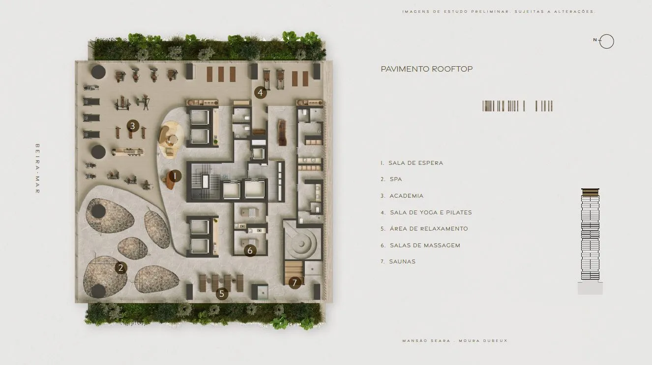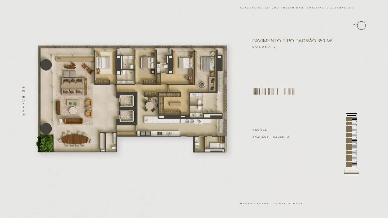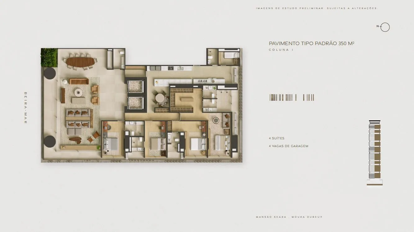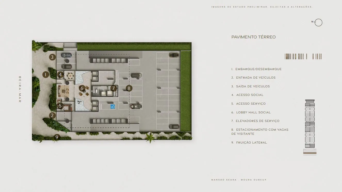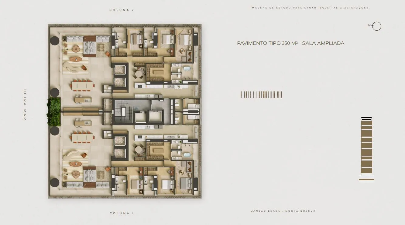 Mansão Seara é um empreendimento que é o primeiro projeto imobiliário verticalizado do premiado arquiteto Arthur Casas no Nordeste. Serão unidades de 350 m² e 661 m², sendo 4 ou 5 suítes, além de 4 ou 6 vagas de garagem. Localizado no Meireles, na Av. Beira Mar, ficando à 14min da Praia do Futuro, à 18min do aeroporto e ficando próximo a shoppings com Riomar Papicu e Iguatemi Bosque. Com área de terreno de 2.670,00m² distribuídos em subsolo 2, subsolo 1, térreo, garagem 1, garagem 2, pavimento social, 42 pavimentos tipo, rooftop, pavimento técnico e heliponto e área privativa que variam entre 350m² e 661m² com opção de 4 e 6 vagas vagas de garagem. Além de uma excelente área de lazer com sala de espera, sauna, academia, sala de ioga e pilates, área de relaxamento, salas de massagem, spa, piscina semi olímpica com hidromassagem, solário com bar, piscina infantil, brinquedoteca, terraço com playground, quadra de tênis, lobby salão de festas, salão de festas com jogos, cozinha salão de festas e mais.