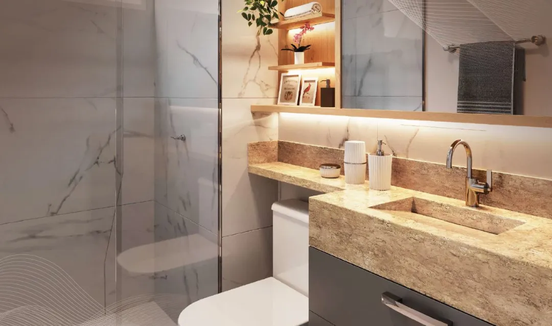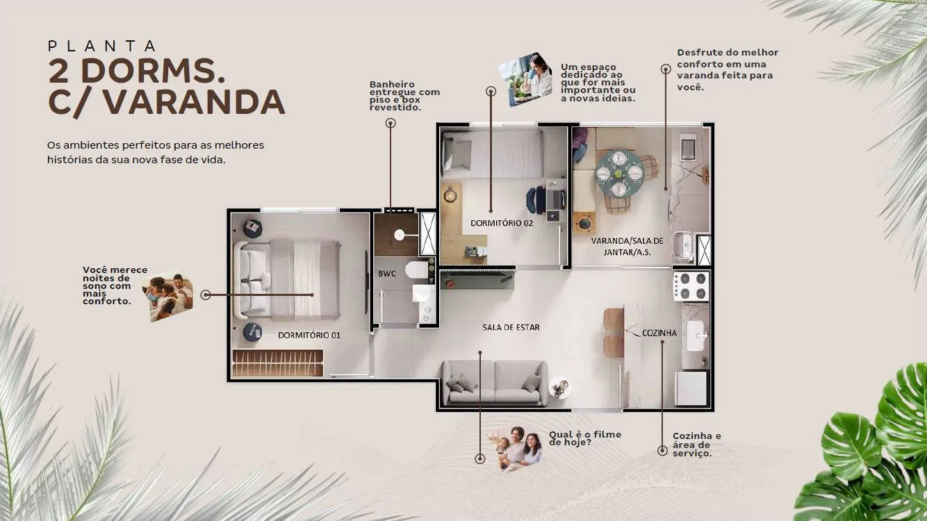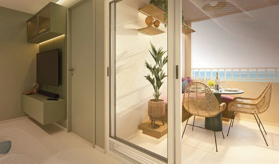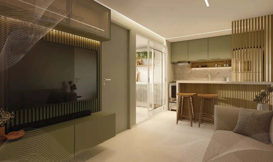 Todas as imagens, perspectivas e representações visuais contidas neste material possuem caráter meramente ilustrativo e têm como objetivo apresentar sugestões de decoração e ambientação do empreendimento. Podem ocorrer alterações nas características finais em decorrência de ajustes técnicos, legais ou executivos. As perspectivas artísticas da vegetação representam projeções de paisagismo com porte adulto, que será alcançado após a entrega do empreendimento e em conformidade com o projeto aprovado. O detalhamento completo dos serviços, acabamentos, equipamentos, e especificações técnicas que compõem este empreendimento encontra-se disponível no Memorial Descritivo, na Convenção de Condomínio e na Planta de Contrato, em conformidade com os termos da Lei nº 4.591/64.
